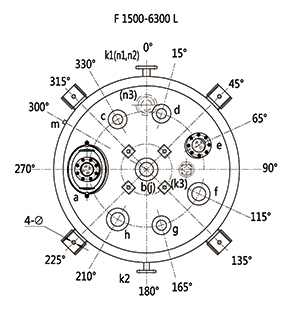 F1500L-F6300L閉式搪玻璃反應釜(閉式搪瓷反應釜)設計圖紙及參數如下所示: