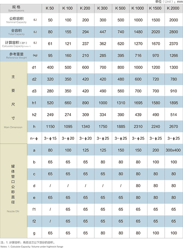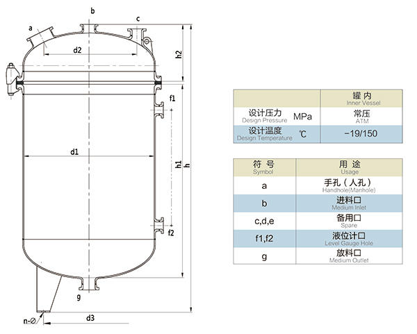 K50L-K200L開式搪玻璃貯罐(開式搪玻璃儲罐)設(shè)計(jì)圖紙及參數(shù)如下所示:
