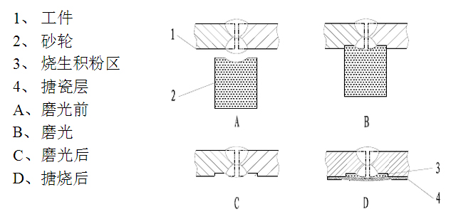 很多小的搪玻璃反應(yīng)釜生產(chǎn)廠家或小作坊在設(shè)備生產(chǎn)制造過程中,由于生產(chǎn)工藝的不成熟,較容易出現(xiàn)燒成不夠(俗稱燒生)或焊縫內(nèi)氣體沖破搪瓷(俗稱電焊泡)兩大缺陷。一般采用埋弧焊的內(nèi)縫的焊縫余高可達(dá)2-3mm,這樣,在磨光工序時會將砂輪表面形成弧槽,當(dāng)加工下一工件時,會將焊縫兩側(cè)磨洼下去,再經(jīng)噴粉、搪燒,積粉區(qū)因溫度積累不夠,而形成“燒生”現(xiàn)象,這類產(chǎn)品從表面是無法肉眼判斷出來的,用戶將該產(chǎn)品投入使用后,在交變載荷作用下,積粉區(qū)表面搪瓷由于脆性極高,且缺乏鋼板支持,較易碎裂,也就是俗語的“爆瓷”現(xiàn)象。而且存在的未經(jīng)燒成的“生粉”是沒有任何防腐能力的,以致物料直接滲透過積粉區(qū),腐蝕鋼板基體,破壞容器。為了我們方便大家理解,請結(jié)合下圖就行分析。