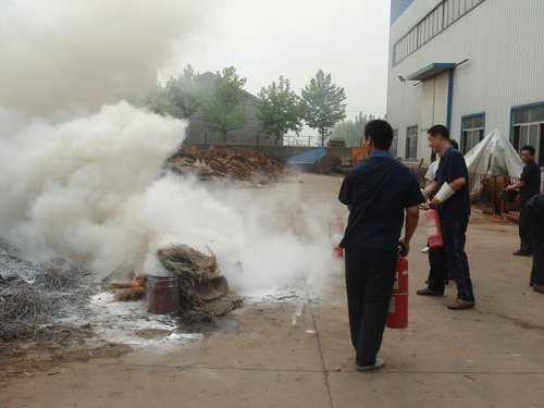 2009年6月28日, 每年一次的安全消防常識講座如期在淄博太極搪玻璃設(shè)備有限公司會議室舉行。安全大會上公司安全技術(shù)負責(zé)人對全體職工進行了深刻的安全意識教育。今年夏季異常高溫干燥,雖然這種天氣對于搪玻璃設(shè)備的制造創(chuàng)造很好的條件,但高溫干燥極易引起火災(zāi),倡導(dǎo)每個職工一定有較高的安全防火意識。會后公司組織各生產(chǎn)的全體職工進行消防模擬演習(xí)。
