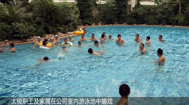 “上班努力工作,下班享受生活”,太極公司非常重視員工生活,視員工為親人,為他們提供一流的工作環(huán)境,高標(biāo)準(zhǔn)的員工餐廳,舒適的公寓,休閑的運(yùn)動(dòng)場所,讓員工時(shí)刻感受到太極大家庭的溫暖。2006年太極公司在緊鄰廠區(qū)另購?fù)恋?0畝,投資8000余萬建成了約6萬平米的職工單身公寓樓,每人50平米房間,統(tǒng)一配置電視、網(wǎng)絡(luò)、洗浴間、床柜、空調(diào)、暖氣、桌椅一應(yīng)俱全。生活區(qū)還配備了3D電影院、超市、兒童樂園、衛(wèi)生所、棋牌室、健身房、乒乓球室、臺球室、羽毛球館、籃球場、露天健身器械等,并不斷舉辦各種文化體育活動(dòng)豐富職工生活。