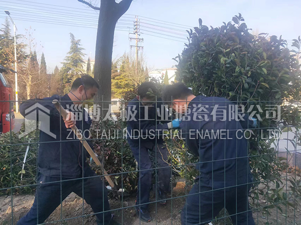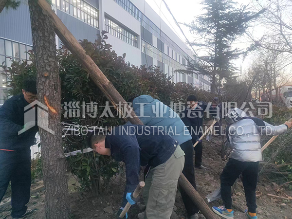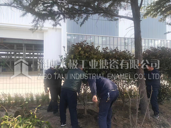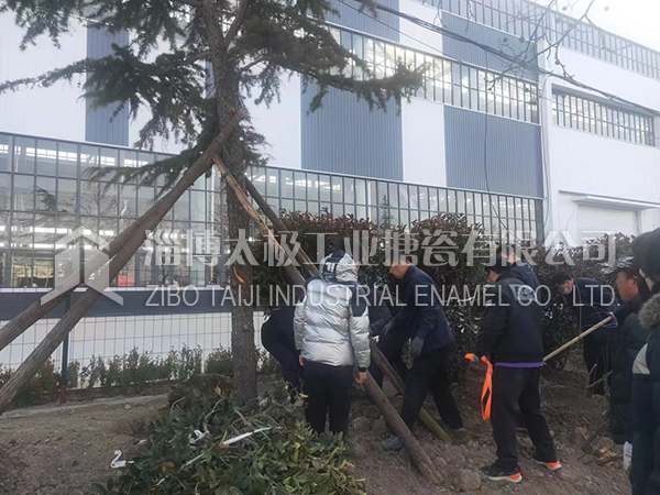 15053366601“一年之計(jì)在于春”,2022年2月4日(立春)上午8點(diǎn)開始,淄博太極工業(yè)搪瓷有限公司的辦公后勤人員齊上陣,種下一顆顆樹苗,把太極新廠區(qū)進(jìn)行全面綠化。