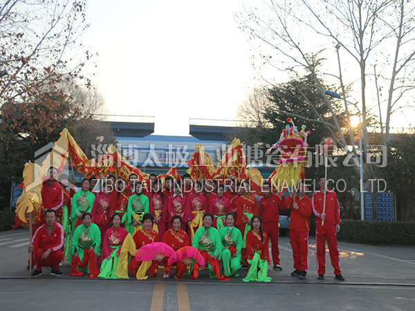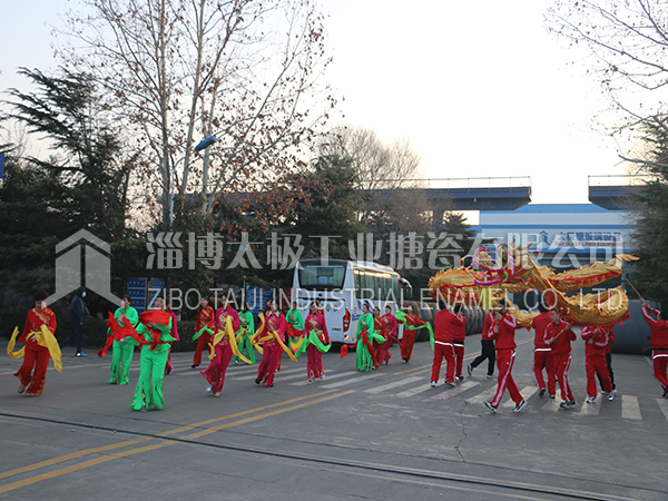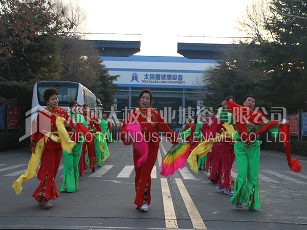 餐后職工及家屬們在生活區(qū)廣場上打起鼓來敲起鑼,舞龍秧歌放煙花。共同祝愿太極搪玻璃設備公司的明天更加燦爛輝煌。